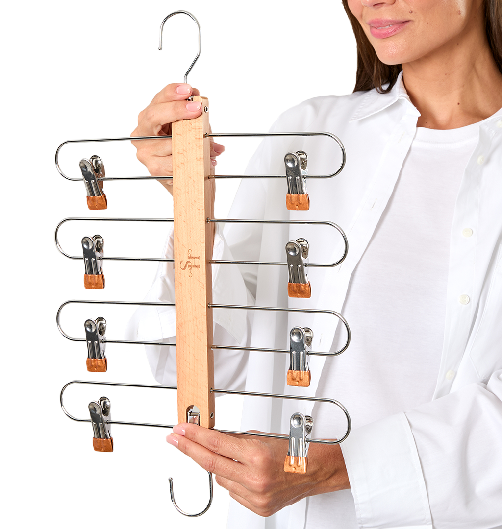 Their 360° swivel hooks also ensure easy access from every angle. Additionally, HangSage Pants Hangers’ extendable rods turn an early-morning hassle into an all-too-easy task. Simply, reset your pants hangers into the horizontal position, pull the desired pair towards you, and watch them slide right into view!