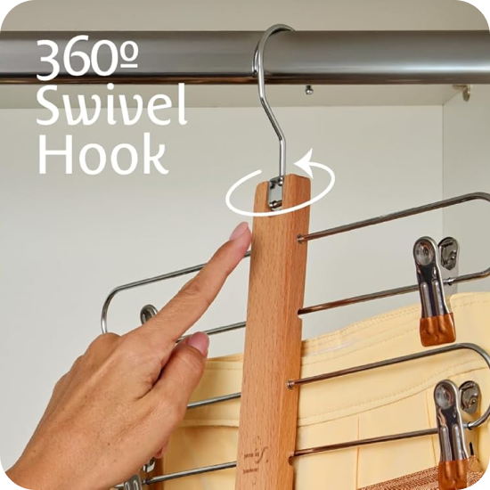 - Swivel Hooks Make Hanging Clothes Extra Easy: Every HangSage Hanger comes with two 360° swivel hooks that make loading and organizing your clothes easier than ever.