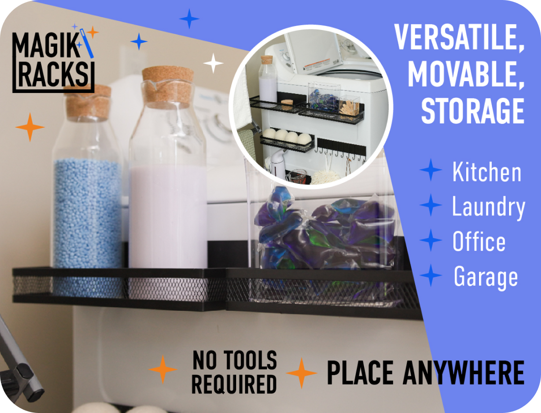 Introducing the Magik Racks Magnetic Shelves: The Organization Assistant That Does the Trick.
