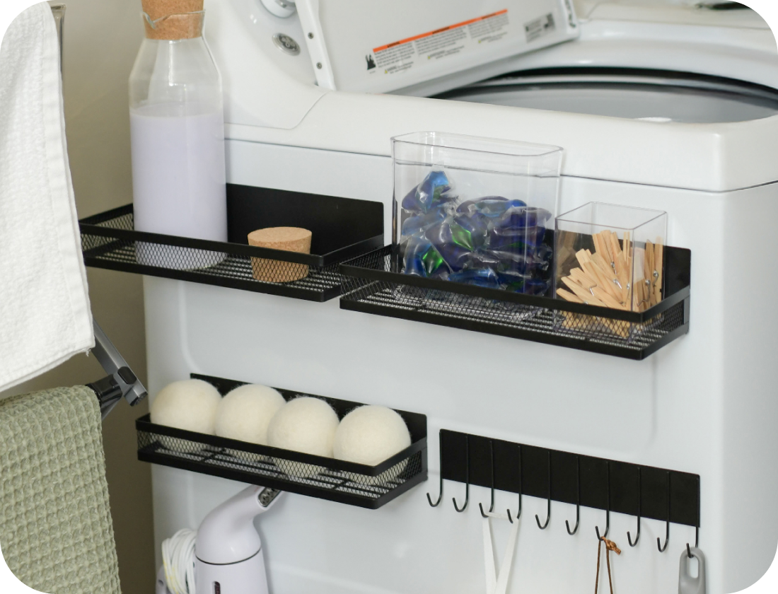 Rest assured, Magik Racks’ industrial-strength magnets stay stuck in place and make installation easier than pulling a rabbit from your hat. Each shelf can hold up to 8 pounds, making it the perfect storage for your office overflow, laundry accessories, cleaning essentials, and more.